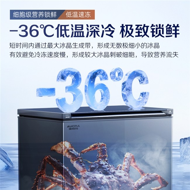 囤下的新鲜海鱼,在-36℃超低温深冷的瞬间,解冻后依然汁水丰盈,风味几乎无损。澳柯玛BC/BD-312DHX 蓝擎冷柜搭载深冷速冻技术,最低可达-36℃低温环境。相比传统冷柜-18℃至-25℃的冷冻温度,其极速锁鲜能力大大提升,能快速穿透食材细胞,减少汁液流失,保留食材口感。