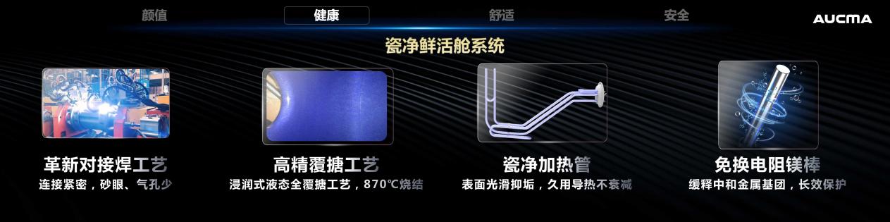 该产品创新搭载由改良对接焊工艺与高精度浸润式覆搪工艺联袂打造的无缝内胆,更以瓷净无垢加热管与免换电阻镁棒为核心,构建全新瓷净鲜活舱系统,守护沐浴水质健康。此外,产品特别配备锶泉天成净垢润肤系统,外置“小蓝瓶”通过四大核心技术打造鲜活水质。其一,净滤技术搭载高精度源头滤净模块,深度拦截杂质与泥沙;其二,阻垢技术利用FOF阻垢因子持续缓释,有效抑制水垢生成,防止管道及元件结垢;其三,除氯技术高效去除水中余氯,减少氯气对肌肤的刺激与干燥感;其四,富锶技术采用天然矿化工艺,在胆内释放有益锶元素,实现鲜活矿化水质。四大技术协同作用,达成“胆外净滤阻垢,胆内除氯富锶”的双重净化效果。
