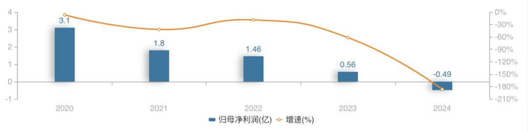 2020年至2024年澳柯玛归母净利润及同比情况(单位:亿元、%)