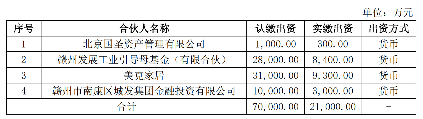 公告显示,美克家居于2022年6月10日召开了第八届董事会第十二次会议,审议通过了《关于拟参与设立产业基金暨关联交易的议案》,同意公司以自有资金认缴出资与北京国圣资产管理有限公司、关联法人赣州发展工业引导母基金(有限合伙)、关联法人赣州市南康区城发集团金融投资有限公司共同对外投资设立产业基金。