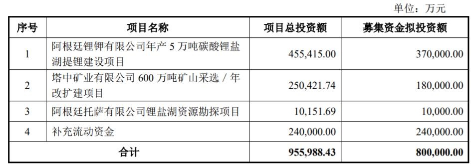 本次募资的第三个投向是阿根廷托萨有限公司锂盐湖资源勘探项目,该项目拟投资1.02亿元,预计勘探期为12个月,在阿根廷的阿里扎罗盐湖进行资源勘探。