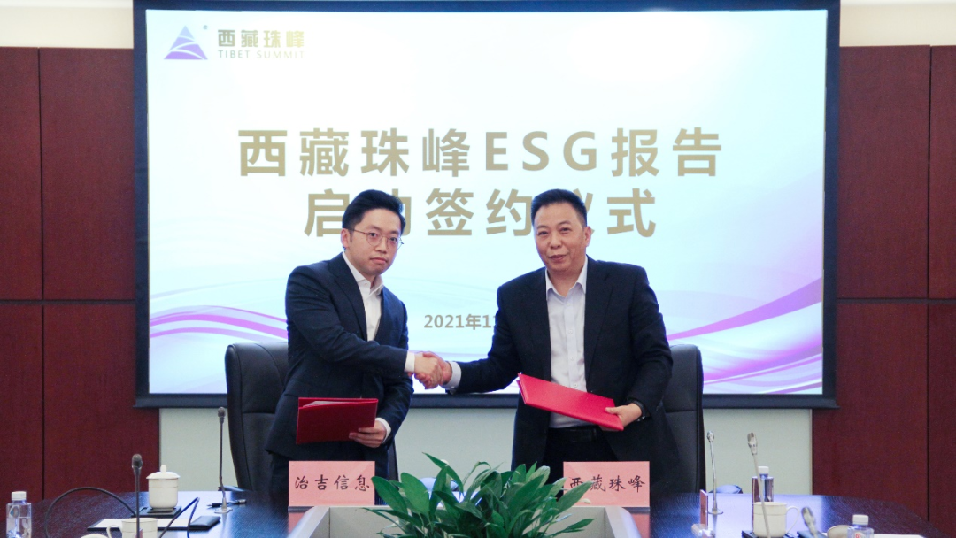 2021年11月1日,公司总裁王喜兵等领导会见了治吉科技总裁李天晟一行,就有关公司启动ESG报告事宜进行了深入交流,并签署了合作协议,标志西藏珠峰ESG正式开启咨询、认证的大门。