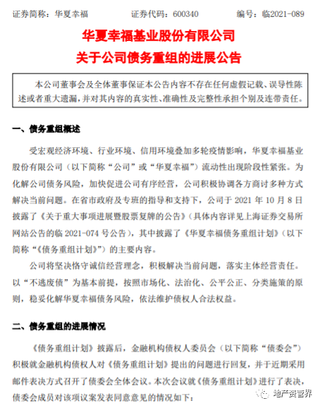 近日,华夏幸福发布公告称,华夏幸福《债务重组计划》已获华夏幸福金融机构债权人委员会(下称“债委会”)表决通过。