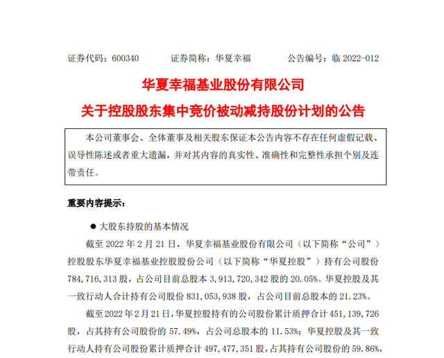 而且2022年2月22日,华夏幸福发布公告,股东集中竞价被动减持股份。和正荣集团如出一辙。