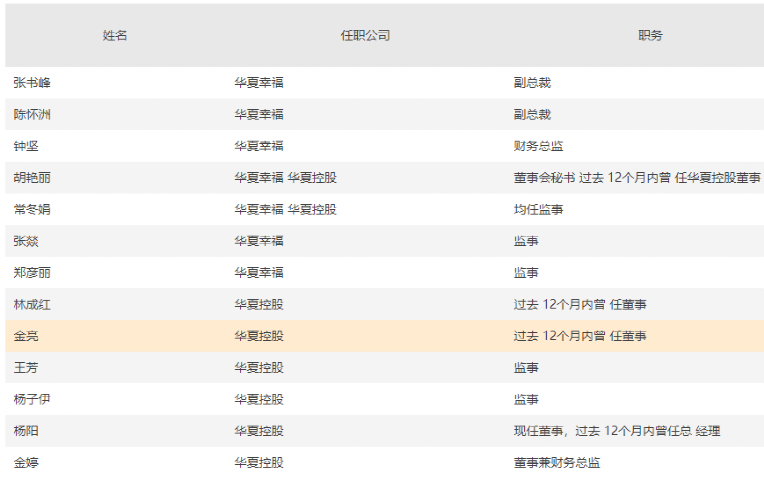 激励对象为“负责两个平台业务主体管理及后续资本运作的核心高管、业务骨干、对本次债务重组有重要贡献的人员、公司重要管理层及总部人员以及其他对公司发展有重要贡献的人士”。华夏幸福及控股股东华夏控股可能涉及激励的董监高有13名,名单如下: