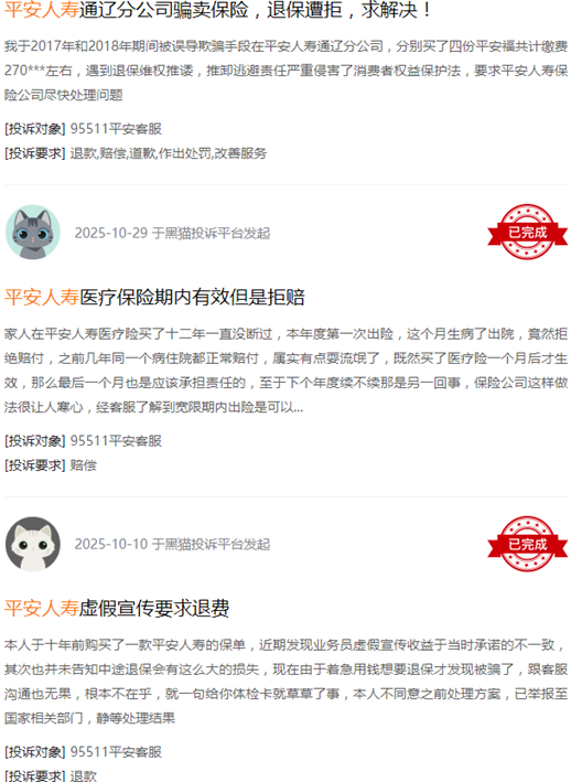 据统计,在 平安人寿 作为被告的案件中,超七成为保险合同纠纷,涉案金额占比近八成。黑猫等投诉平台上,也不乏消费者对 平安人寿 拒赔和误导销售的投诉。