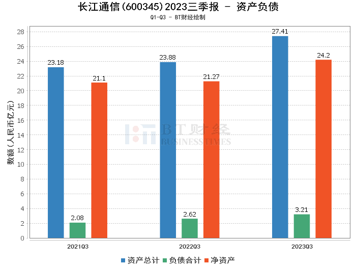 从资产负债方面来看,长江通信的总资产由上年度末的24.84亿元增长至本报告期末的27.41亿元,增幅达到了10.34%。负债合计也从上年度末的2.94亿元上升至本报告期末的3.21亿元。净资产则从21.9亿元增长至24.2亿元,增长了10.52%。资产负债率略有下降,从上年度末的11.85%降至本报告期末的11.71%,显示公司的财务结构相对稳健。