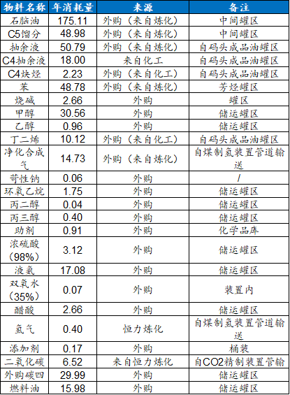 表?主要原辅料消耗(总计)??单位:万吨/年
