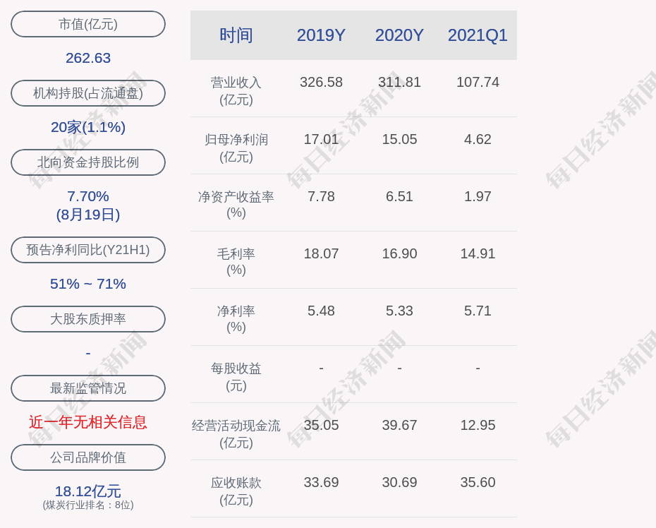 值得注意的是,A股上市公司环境风险榜·2021年1-6月榜显示,华阳股份(600348.SH),在A股环境风险榜2021年1-6月排名第12,环境风险值为285.968。这份A股全覆盖、数据多维度、信息严核查的国内首份上市公司环境风险榜,经过严谨事实核查和科学评估模型,每月动态更新,量化评估上市公司环境表现。