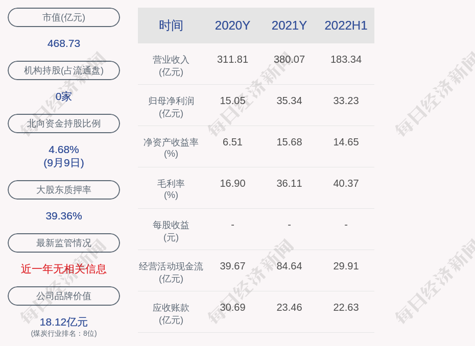 2022年半年报显示,华阳股份的主营业务为煤炭、供电、供热,占营收比例分别为:93.95%、0.56%、0.19%。