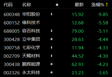 11月17日午后,钠离子电池板块走弱。13时55分,华阳股份接近跌停,维科技术、容百科技跌超5%,立中集团、七彩化学、天赐材料等跟跌。