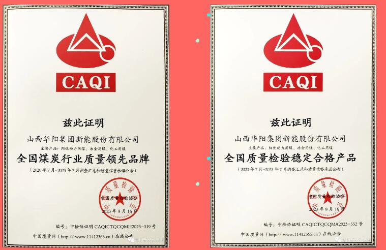 近日,中国质量检验协会发布公告,经2020年7月至2023年7月调查汇总和质量信誉承诺公告,山西华阳集团新能股份有限公司获评全国煤炭行业质量领先品牌、全国质量检验稳定合格产品两项荣誉。