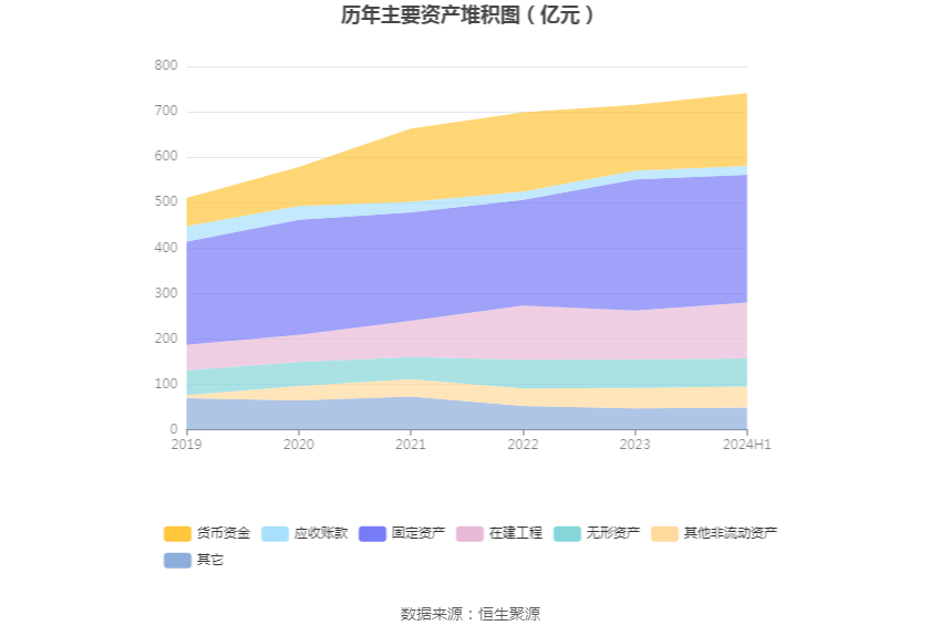资产重大变化方面,截至2024年上半年末,公司固定资产较上年末减少2.66%,占公司总资产比重下降2.40个百分点;在建工程较上年末增加14.51%,占公司总资产比重上升1.60个百分点;货币资金较上年末增加10.18%,占公司总资产比重上升1.30个百分点;无形资产较上年末减少0.90%,占公司总资产比重下降0.38个百分点。