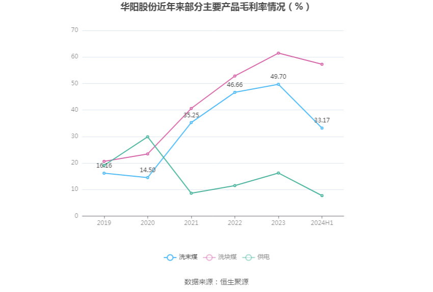 分产品看,洗末煤、洗块煤、供电2024年上半年毛利率分别为33.17%、57.25%、7.69%。