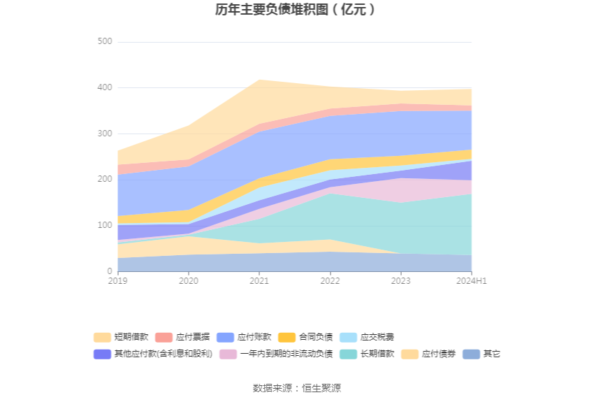 负债重大变化方面,截至2024年上半年末,公司其他应付款(含利息和股利)较上年末增加157.89%,占公司总资产比重上升3.40个百分点;一年内到期的非流动负债较上年末减少44.42%,占公司总资产比重下降3.45个百分点;长期借款较上年末增加20.60%,占公司总资产比重上升2.55个百分点;应付账款较上年末减少12.79%,占公司总资产比重下降2.13个百分点。