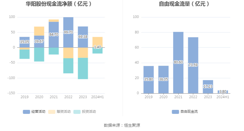 进一步统计发现,2024年上半年公司自由现金流为3.80亿元,相比上年同期下降61.35%。