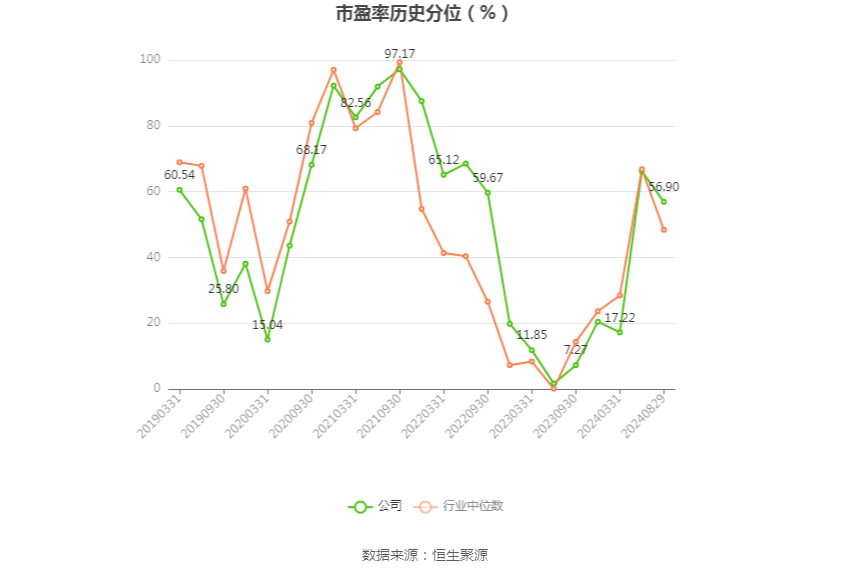 市盈率为负时,不显示当期分位数,会导致折线图中断。