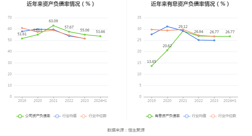 在偿债能力方面,公司2024年上半年末资产负债率为53.66%,相比上年末下降1.40个百分点;有息资产负债率为26.77%,相比上年末基本持平。