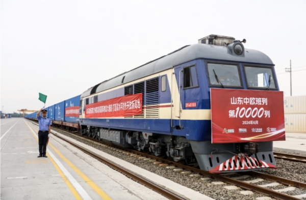 近日,一列由山东高速统筹运营的山东中欧班列从济南董家货运中心缓缓发出,满载53车钢球、激光雕刻机等货物,预计9天后抵达阿拉木图集结中心。这也是自2018年10月首发以来,开行的第10000列山东中欧班列,“齐鲁号钢铁驼队”迎来了重要里程碑。用时不足六年,即跨入“万列俱乐部”,山东成为用时最短突破万列的省份。