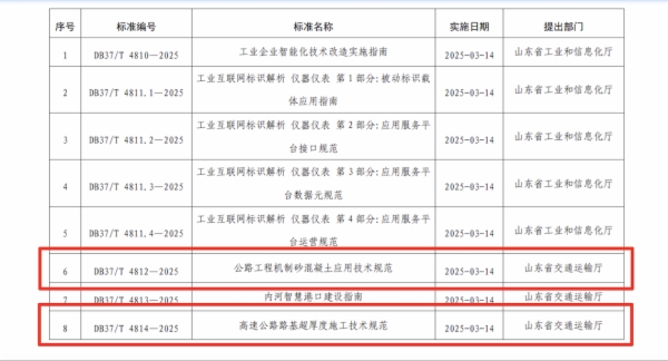 近日,山东高速旗下建设管理集团主编的《高速公路路基超厚度施工技术规范》以及参编的《公路工程机制砂混凝土应用技术规程》两项地方标准,获批准发布。