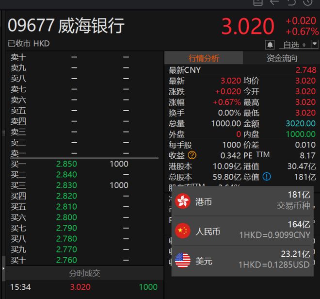 最初, 山东高速 以8.23亿元认购 威海银行 增资扩股后的7.593%股份,对应估值108.4亿元。根据Choice数据, 威海银行 最新估值已经升至约164亿元,股权价值显著提升。