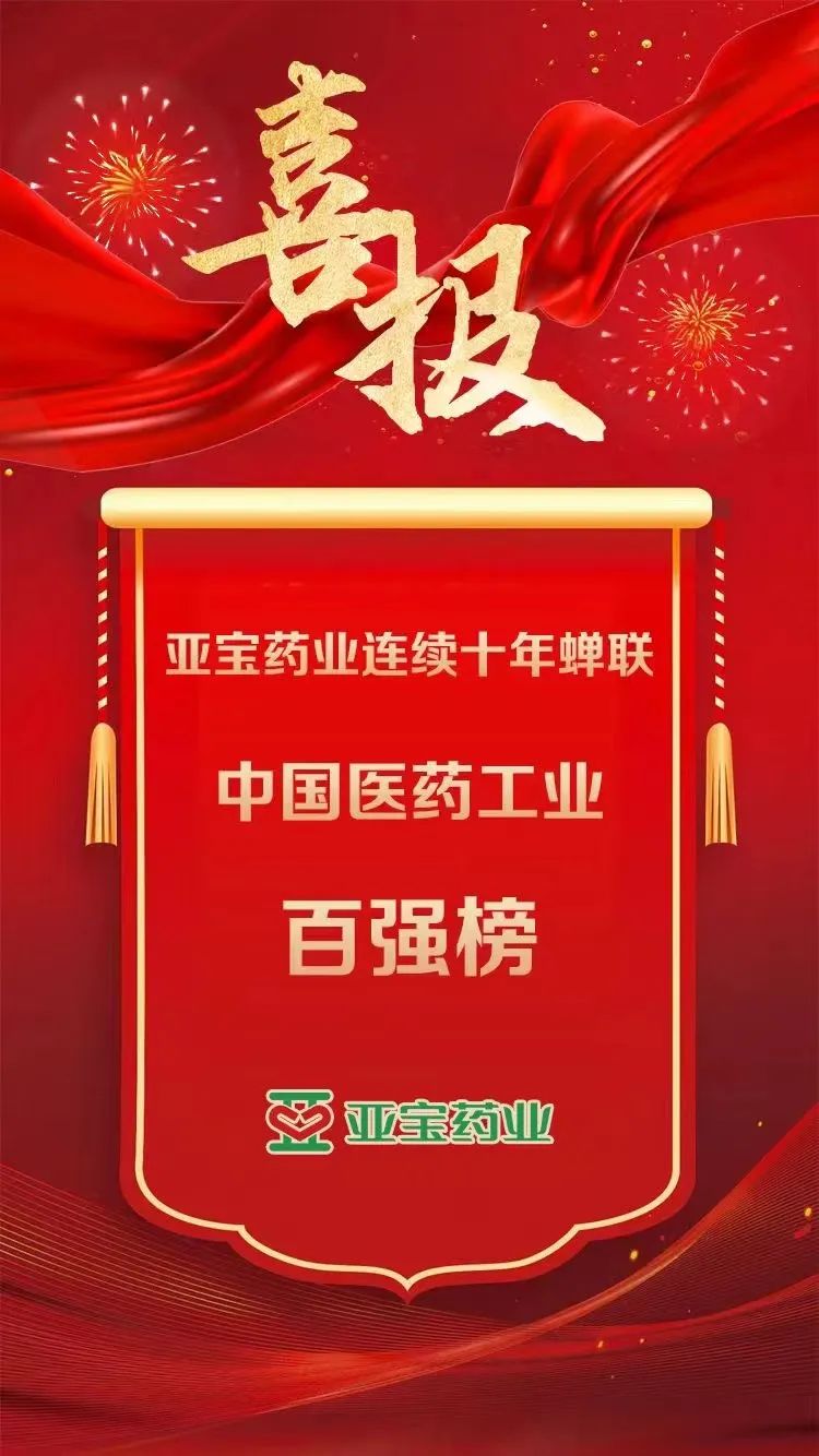 由中国医药工业信息中心组织开展的“年度中国医药工业百强企业”评选活动,是我国医药行业极具权威性和社会影响力的专业评选。评选依据中国医药统计年报数据,结合企业新药创新、合理布局、发展潜力、市场聚焦等指数,以工业企业法人单位为基础进行排名。亚宝能够连续10年入围该榜单,得益于企业强大的综合实力、持续的研发投入和完善的研发布局。