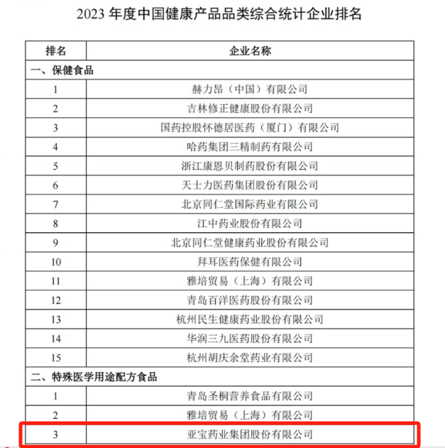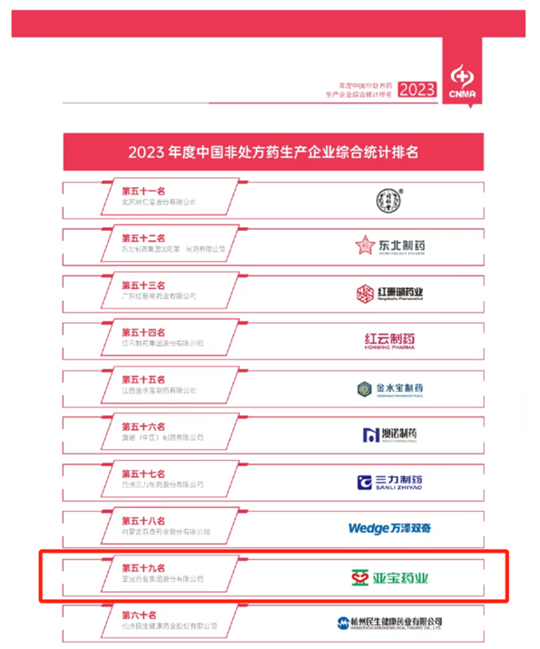 亚宝药业荣登“2023年度中国非处方药生产企业综合统计排名”榜单第59位