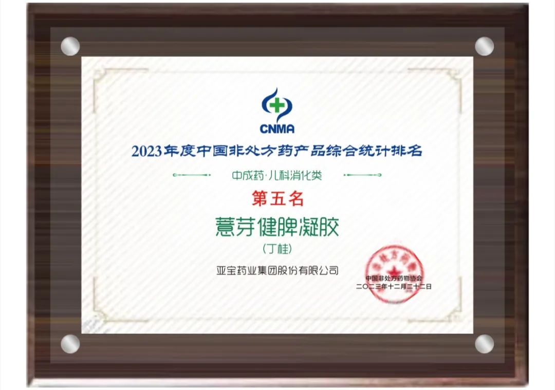 薏芽健脾凝胶荣获“中成药·儿科消化类”第五名