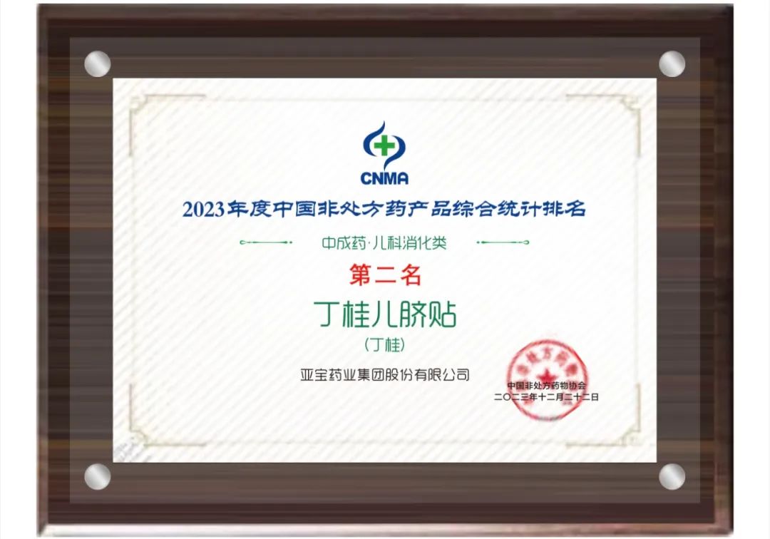 丁桂儿脐贴荣获“中成药·儿科消化类”第二名