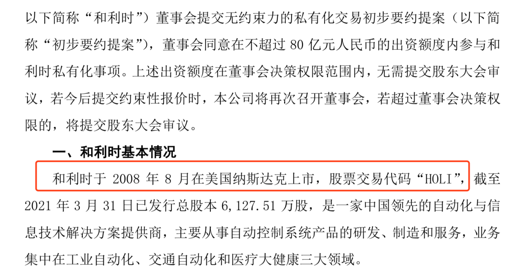 中国集散控制系统(DCS)龙头企业之一的和利时(HOLI.O)私有化之路将开启,下一步是回归A股吗?