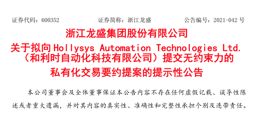 浙江龙盛称,参与和利时私有化旨在配合公司长远发展的长期战略性安排。和利时是中国领先的自动化与信息技术解决方案供应商,浙江龙盛可以此为契机加强与和利时在技术、业务等领域的合作,加速推动公司工业自动化水平发展,并分享和利时业务成长带来的价值。