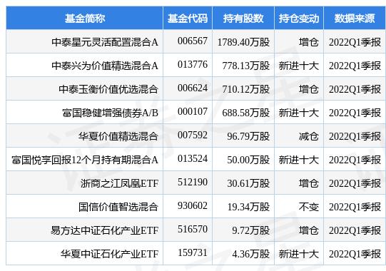 其中持有数量最多的基金为中泰星元灵活配置混合A,目前规模为28.34亿元,最新净值2.3485(4月27日),较上一交易日上涨0.6%,近一年上涨22.86%。该基金现任基金经理为姜诚。