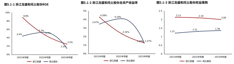 浙江龙盛ROE的下滑主要来源于总资产报酬率和权益乘数的双重下滑。2023半年报浙江龙盛ROE2.46%,较2022半年报减少2.21个百分点,股东回报水平降低;总资产报酬率1.27%,较2022半年报减少1.05个百分点,总资产回报水平降低。权益乘数2.00倍,较2022半年报降低0.10倍,股东权益撬动资产的能力基本稳定。