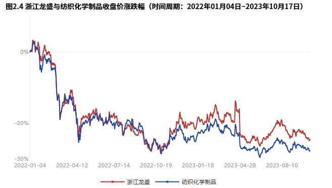 2022年01月04日到2023年10月17日,公司收盘价涨跌幅-24.76%,沪深300指数涨跌幅-26.00%,纺织化学制品涨跌幅-27.84%。