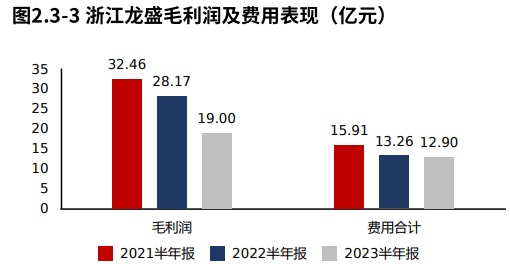2023半年报浙江龙盛净利润8.58亿元,与2022半年报相比,净利润快速下滑。净利润的减少主要由毛利润的减少导致。