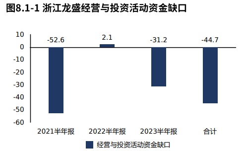2023半年报浙江龙盛经营活动与投资活动资金净流入31.24亿元,较2022半年报资金缺口消失。2021年报到本期经营活动与投资活动累计资金净流入44.70亿元,无资金缺口。