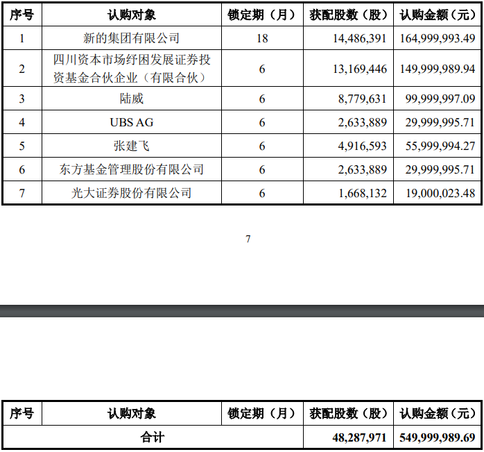 旭光电子9月9日发布非公开发行股票发行情况报告书,确定此次非公开发行股票的发行价格为11.39元/股,发行股份数量4828.7971万股,募集资金总额约5.50亿元。新的集团不参与此次发行定价的询价过程,但承诺接受其他发行对象的询价结果并与其他发行对象以相同价格认购。新的集团获配1448.6391万股,最终认购金额约1.65亿元。四川资本市场纾困发展证券投资基金合伙企业(有限合伙)获配1316.94万股,认购金额1.50亿元。