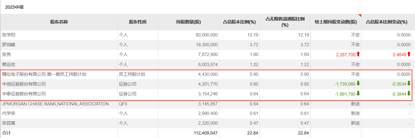 先是机构资金出逃。截至2023年6月末前十大股东中,中信证券、华泰证券就已经合计减持0.75%的股份。