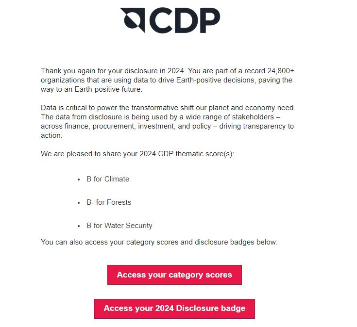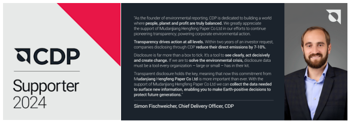 近日,全球环境信息研究中心CDP公布了2024年全球企业气候变化、水安全及森林问卷评分,恒丰纸业在CDP水安全和气候变化问卷中获得管理级别(B)评分,位于披露企业前3%水平。这一成绩不仅展示了恒丰纸业在应对气候变化、减少碳排放、推进可持续水管理的积极行动,更彰显了企业对可持续发展的坚定承诺。