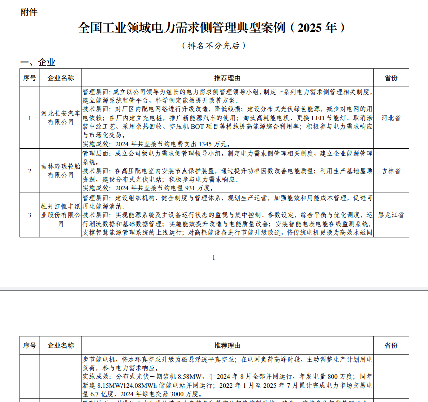 近日,国家工业和信息化部公布了2025年工业领域电力需求侧管理典型案例名单,牡丹江恒丰纸业股份有限公司凭借其卓越的电力优化管理与能效提升实践成功入选,成为全国工业领域绿色低碳发展的标杆企业之一。