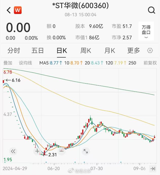 事实上,截止到8月13日,*ST华微最新市值为86亿元,公司上市20多年来业绩峰值出现在久远的2007年,当年实现1.4亿元扣非归母净利润,即便按照2007年的业绩峰值和今天的市值计算,PE也高达61倍,这个估值实在不乐观。