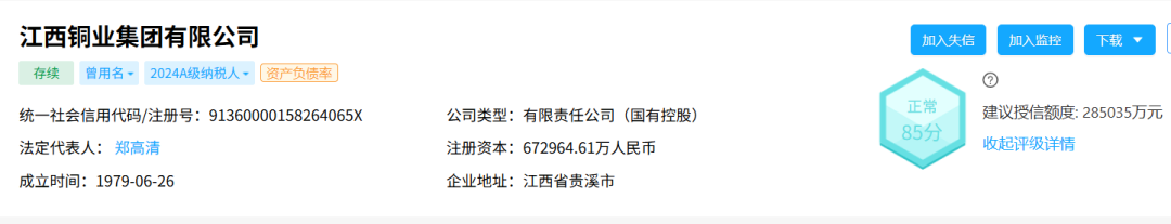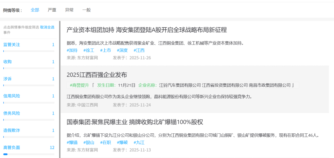 根据AI风险控制系统“RiskRaider风险雷达”的风控监控数据,观测AI对 江西铜业 的风险信息,部分截图如下: