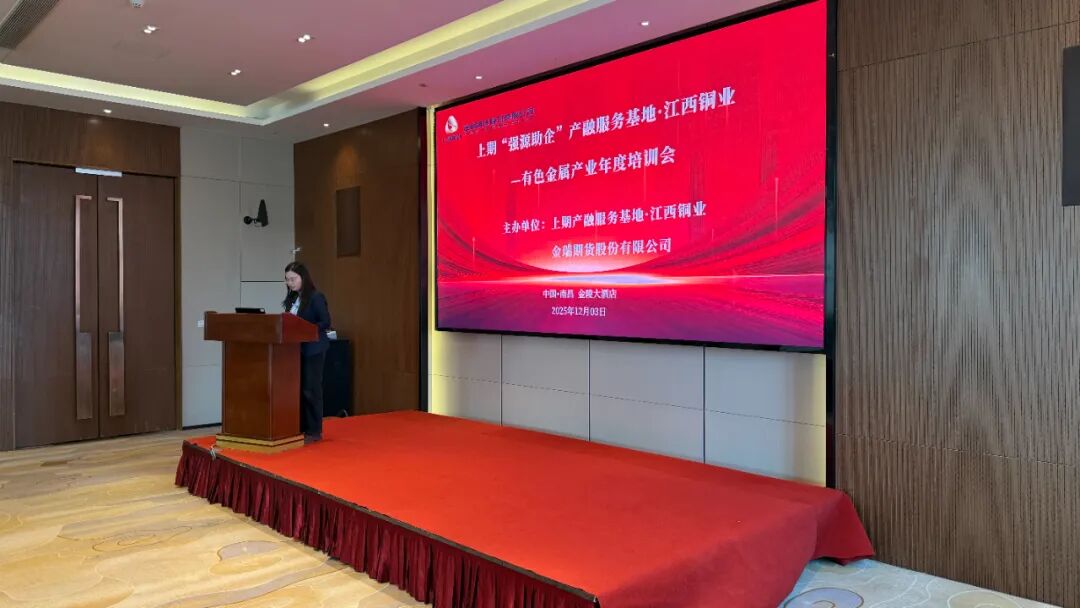 近日,由 金瑞期货 股份有限公司主办的“上期‘强源助企’产融服务基地· 江西铜业 —有色金属产业年度培训会”在南昌圆满落幕。本次会议作为闭门培训会,定向邀请 江西铜业 集团、其下属二级单位以及产业链核心企业代表共计70余人,汇聚34家行业相关单位。会议聚焦有色金属产业趋势研判与风险管理实践,致力于构建高质量的产融对话与行业协作平台。