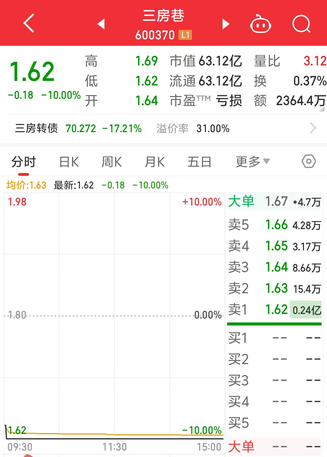 5月31日,三房巷(600370.SH)开盘后随即跌停,报1.62元/股,总市值为63.12亿元。同时,三房转债在低开后也快速下行,尾盘收跌17.21%,报70.272元/张。据统计,三房巷股价离5月最高点2.06元已跌去22.3%。
