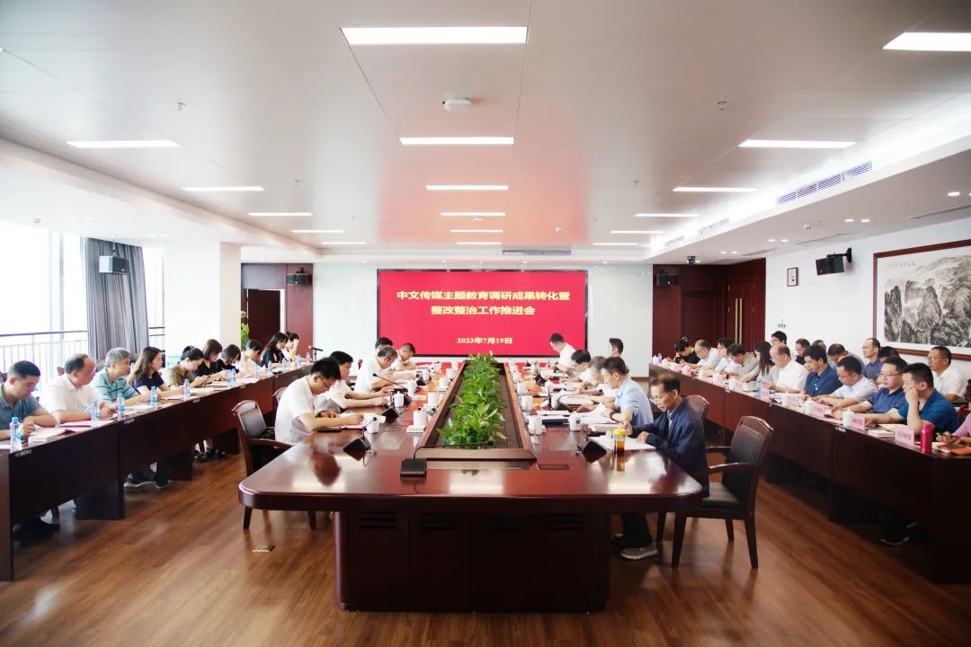 为深入学习贯彻习近平总书记重要讲话重要指示批示精神,持续推进主题教育走深走实,7月19日,中文传媒召开主题教育调研成果转化暨整改整治工作推进会,总结有关工作,交流心得体会,分析存在问题,布置下一阶段工作。