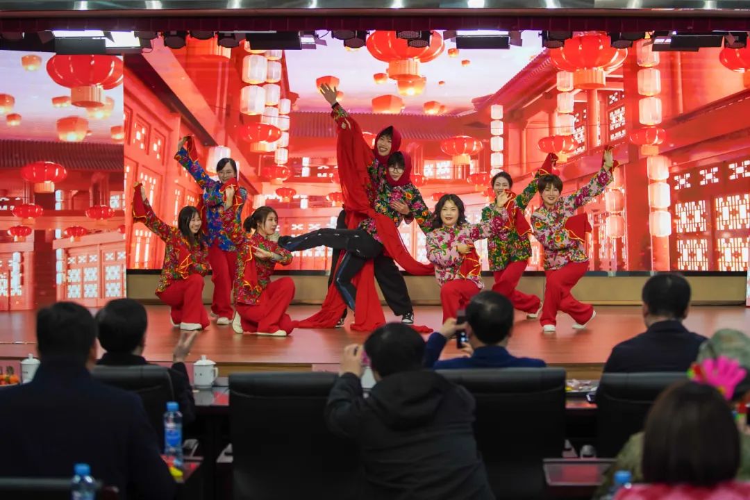 灯火家家市,笙歌处处楼。联欢会在活力四射的开场舞中拉开帷幕,随后宛转悠扬的二胡演奏、温馨动情的歌曲对唱、铿锵有力的老兵合唱轮番上演,还有独具特色的舞龙表演,一条金色“飞龙”带着喜庆吉祥,欢快地变换各式造型,时而上下盘旋,时而蜿蜒翻腾,现场掌声、欢呼声不绝于耳。