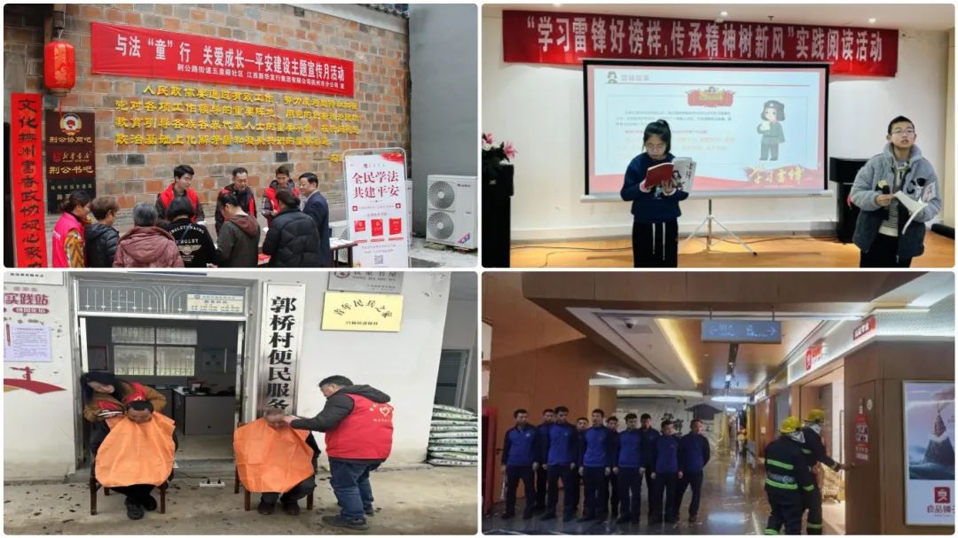 发行集团积极组织各市县分公司开展以“进校园、进家庭、进村(社区)、进企业、进机关、进景区、进公共场所”为主要形式的平安建设“七进”宣传活动。南昌市分公司发挥主阵地作用,邀请了西湖区消防大队在南昌书城开展消防安全演练活动,提升了书城员工安全应急能力,检验了书城消防设施设备的可靠性和完整性;抚州市分公司联合五皇殿社区举办了一场以“与法‘童’行,关爱成长”为主题的未成年人保护法宣讲会活动,通过生动的案例分析和深入浅出的讲解,向社区居民普及了未成年人保护法的相关知识;九江市分公司开展了“学雷锋好榜样,传承精神树新风”的实践阅读活动,活动现场通过宣读雷锋先进事迹和崇高的精神,组织青少年志愿者在书城卖场归纳整理书籍,帮助顾客读者解决问题,来展示雷锋精神内涵;瑞昌市分公司平安建设志愿者们走进帮扶的郭桥村为老年人义务理发,耐心询问群众的需求,提升了老人们的幸福感、获得感。