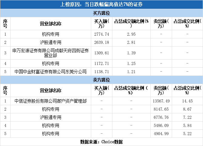 龙虎榜数据显示,今日共5个机构席位出现在龙虎榜单上,分别位列买一、买四、卖二、卖四、卖五,合计净卖出1.46亿元。