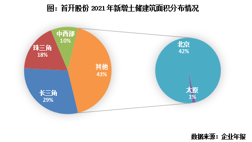 投资拿地建面较上年减少。2021年首开股份全年新增土地地上建筑面积287万平方米,同比下降16.8%。2021年首开拿地较为审慎,通过竞拍或股权收购了北京、太原、福州等地项目约30个,其中目前已开工17个项目。