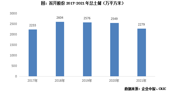【土储规模较去年有所降低,一级开发项目1589万平方米】企业未公布总土储规模,我们根据持有待开发土地以及房地产开发投资项目扣除已竣工部分作为基础,推算截至2021年年末,首开股份的总土储建面约2279万平方米,较上年减少10.6%。此外首开股份还有1589.12万平方米的棚户区改造及土地一级开发项目在推进中,未来也将是其土储来源。根据销售规模,可以看出企业土储较为充足,但是一级开发土地周期较长,容易拖累企业销售业绩及财务状况,也是需要考虑的因素。